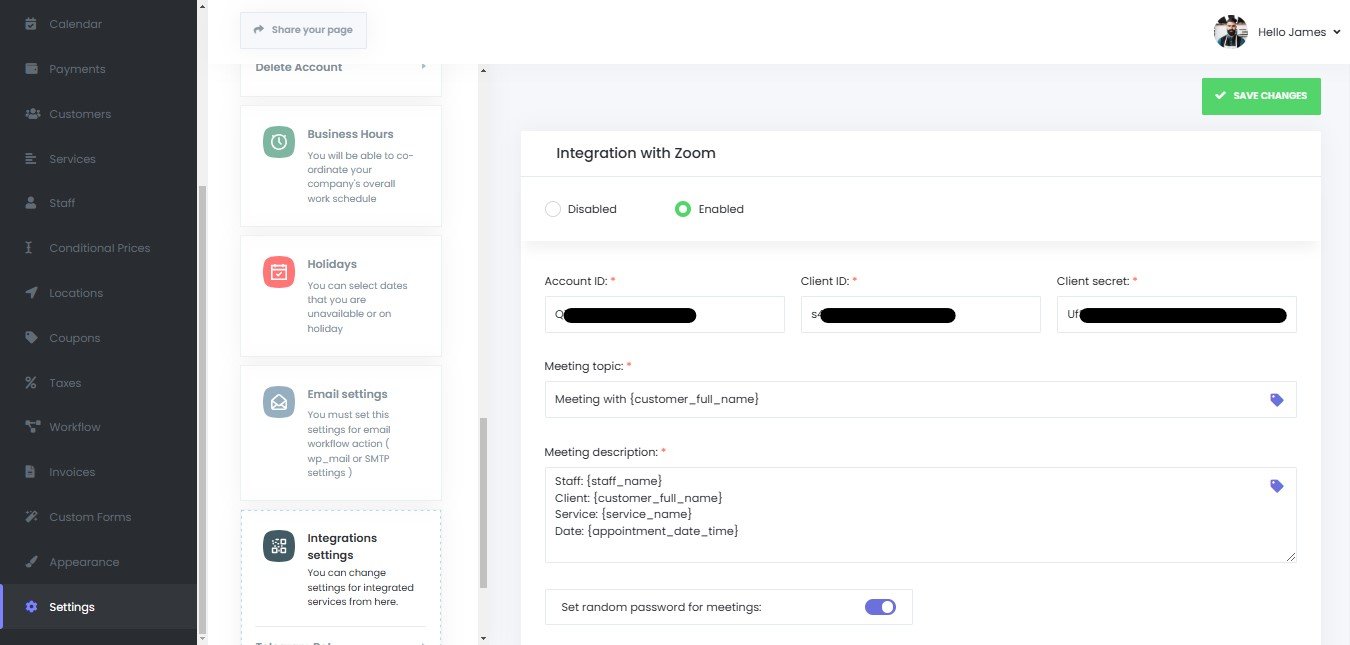 By default, Calenda sets random 8-digit passwords for your Zoom meetings. If you prefer to create meetings without a password, disable the “Set random password for the meetings” option.