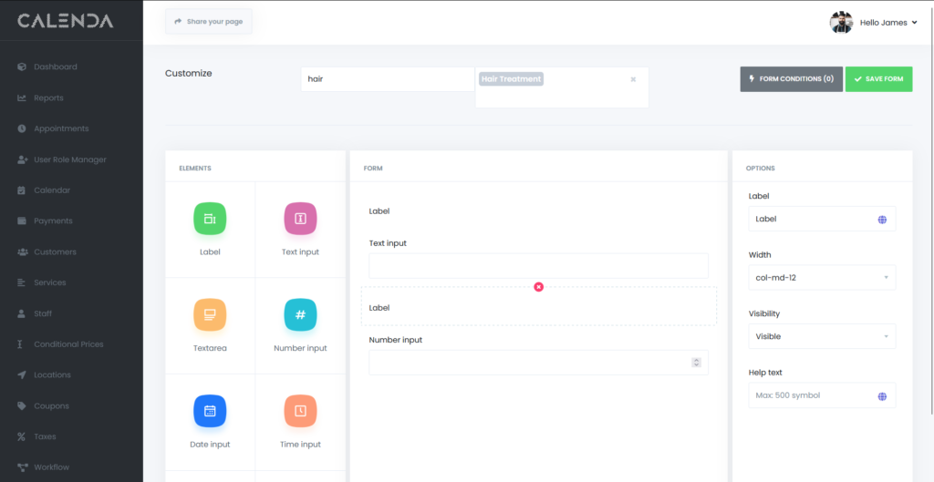 - Save Form: A button to save the form once customization is complete.