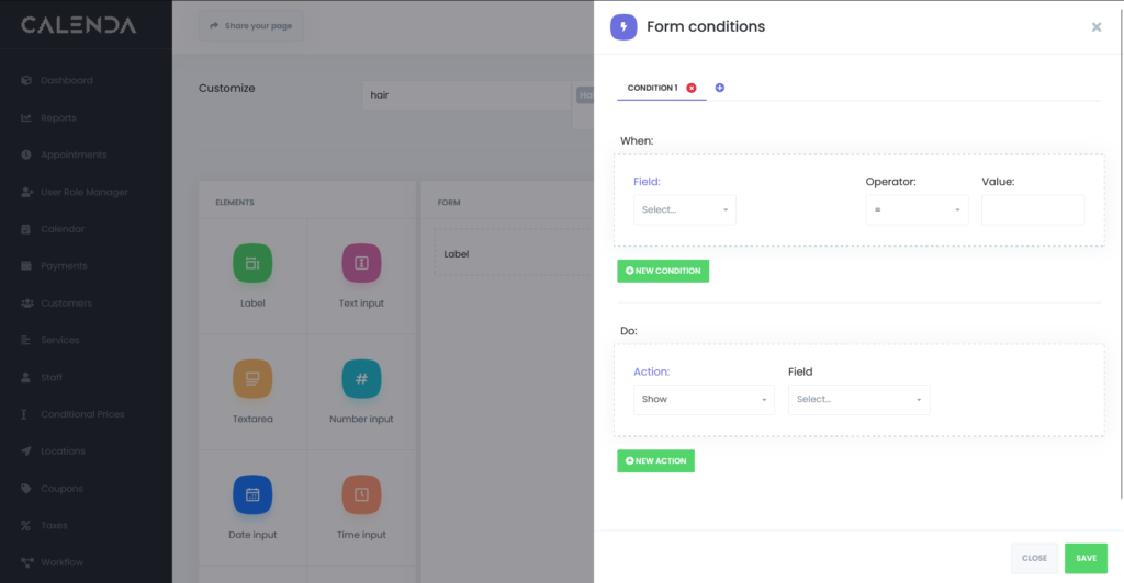 - Conditions: Shows the number of conditions set for each form. Conditions are rules that control the behavior of the form based on user input. The “hair” form has 0 conditions, while the “Barber” form has 1 condition.