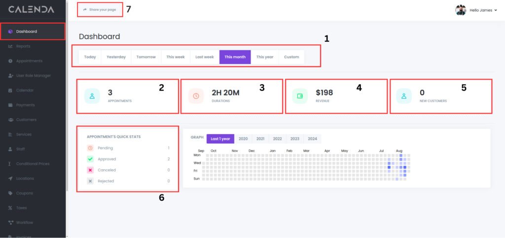 3. Durations: Shows the total duration of all appointments scheduled during the selected time frame.