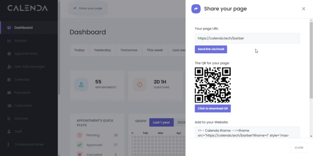 7. Share Page: You can share your booking panel in different ways