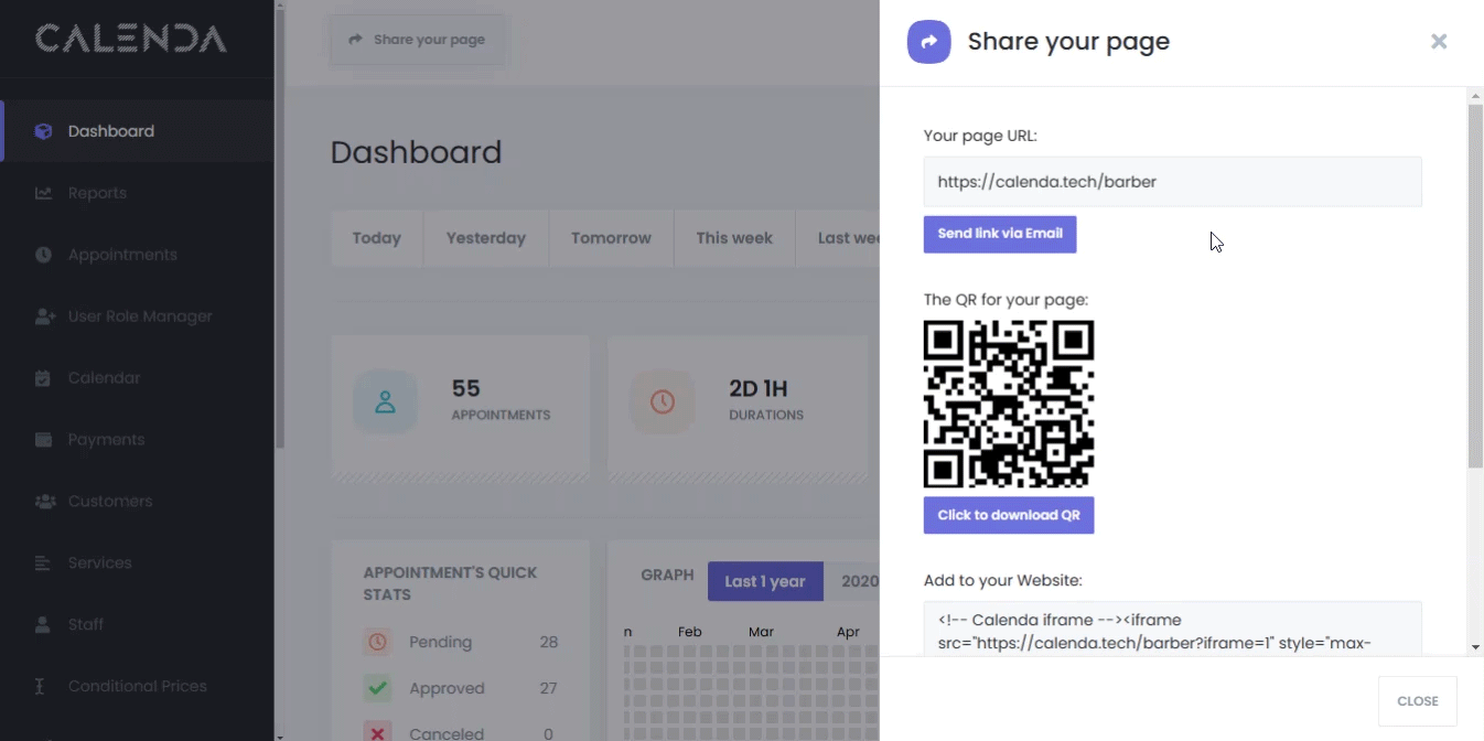 7. Share Page: You can share your booking panel in different ways