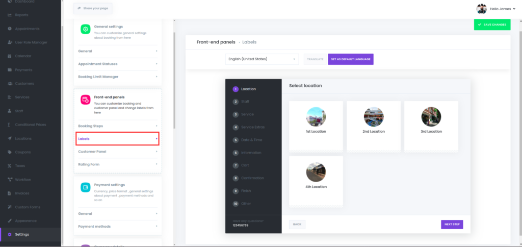 Home / Settings / Front-end Panels / Labels