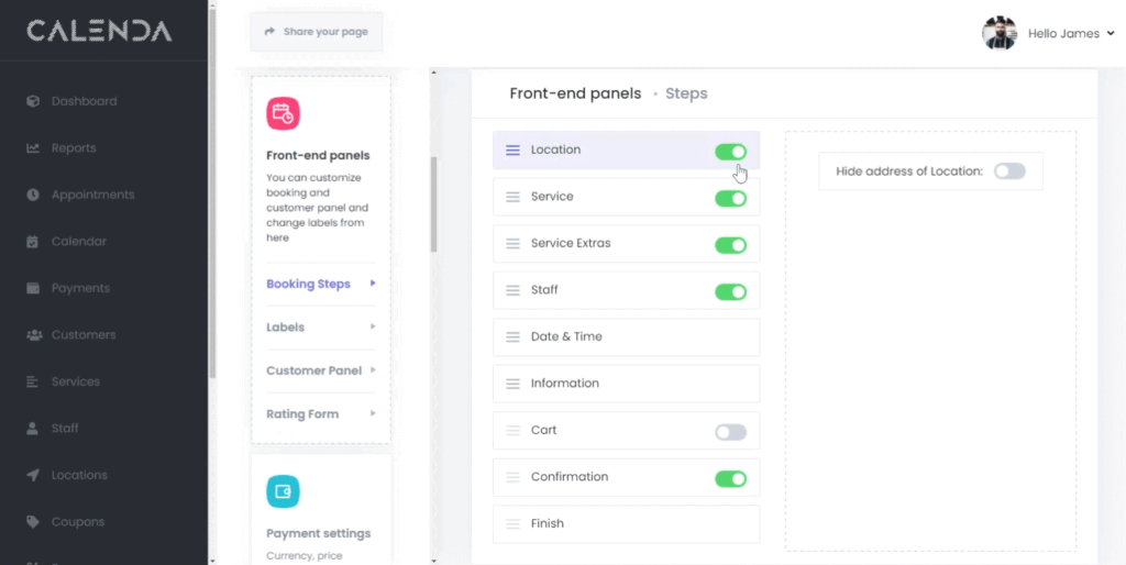 Customize your booking steps to fit your unique process. Easily rearrange the order of steps or hide default ones that aren’t necessary, ensuring a smooth and streamlined experience for your customers.
