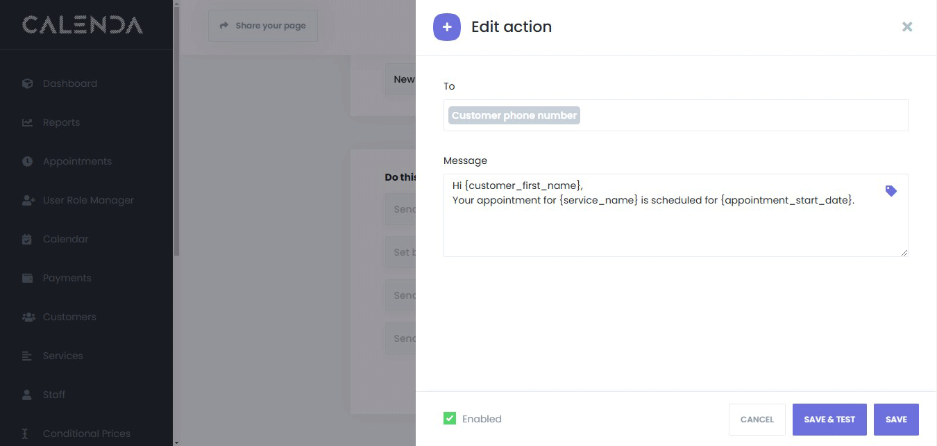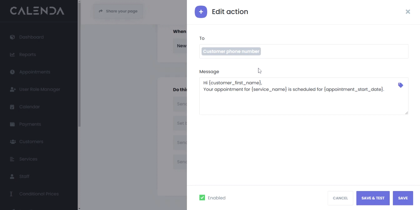 Ensure your clients are always informed with real-time SMS notifications about their appointments.